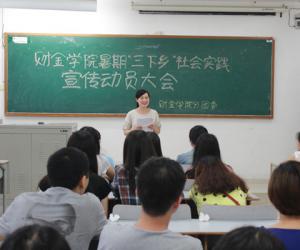此次大会意在动员号召同学们自愿申报、主动参与暑期社会实践。会上,兰老师强调了暑期“三下乡”社会实践对宣传贯彻党的十八届三中全会精神以及践行社会主义核心价值观理念的重要意义;深入解读“为祖国勤学修德 以实践明辨笃实”的活动主题;明细活动内容和具体安排,鼓励和动员同学们以团队或个人的形式深入基层,服务社区,发扬志愿者精神。公司义协会长廖方敏同学分享了去年暑期“三下乡”社会实践的见闻和感悟,号召同学们积极投身到社会实践中,走进城乡社区市民公司,结合自身专业,开展各种调研活动和志愿者服务,长知识,增才干,做贡献,传播正能量。