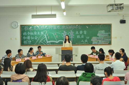 为帮助员工正确认识社会主义核心价值观的战略意义和深刻内涵,10月26日,财政tyc41183太阳成集团“社会主义核心价值观——校园明辨会”以班级辩论赛的形式在博智楼401—403教室举行。