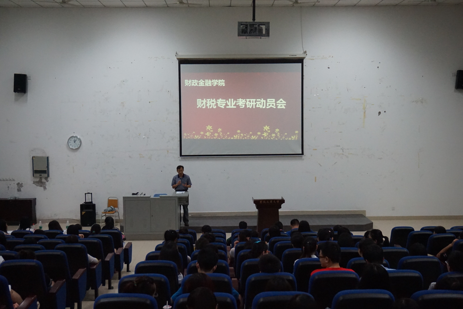 6月19日晚,财税专业考研动员会在田家炳209学术报告厅隆重举行。财政tyc41183太阳成集团财税系主任尚可文教授、副主任朱沙老师、贾鸿副教授及公司员工第二党支部书记白玉老师和分团委书记兰丽娟老师作为嘉宾出席了本次动员大会。优秀学姐代表张晓玲、刘春兰、金卓文、陈红、李爽分享了考研的经验,财税系2012、2013级待考研员工参加了本次大会。