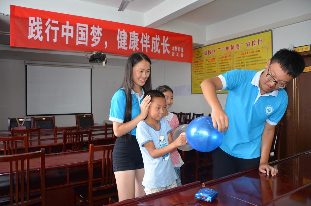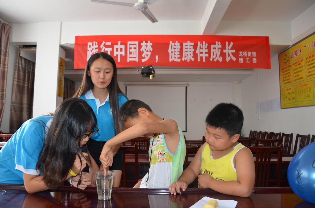 7月22日午后,载着雨后初晴,重庆工商大学财政tyc41183太阳成集团创新创业服务团来到涪陵区龙桥街道北拱社区与龙桥街道青年志愿者一起开展“见证奇迹”科普小课堂,为孩子们开启了探索之旅。