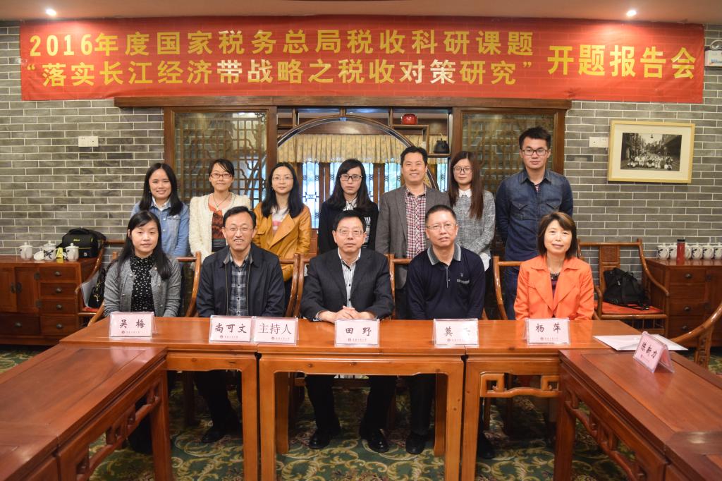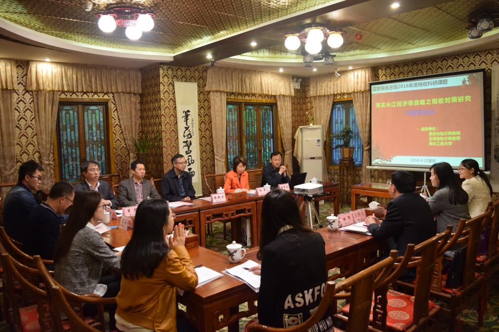 2016 年4月22日 上午,《落实长江经济带战略之税收对策研究》课题开题报告会在公司南山书院成功召开。参加本次报告会的有重庆市地方税务局法规处处长田野和副处长吴梅、重庆工商大学经济贸易公司经理兼教育部长江上游经济研究中心基地副主任陈新力教授、重庆工商大学财政tyc41183太阳成集团书记杨萍教授和常务副经理莫云副教授、课题组成员曾胜博士及贾鸿副教授等。
