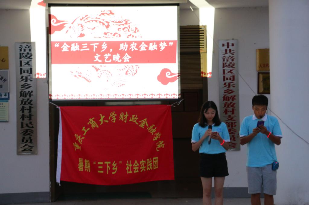 7月20日晚,重庆工商大学财政tyc41183太阳成集团金融电商服务实践团在同乐乡解放村便民服务中心举行了以“金融三下乡,助农金融梦”为主题的联欢晚会。实践团和父老乡亲们一起参与到晚会中,将现场气氛推到了高潮。节目内容丰富多样、形式新颖,同学们青春洋溢,质朴热情的村民也乐在其中。