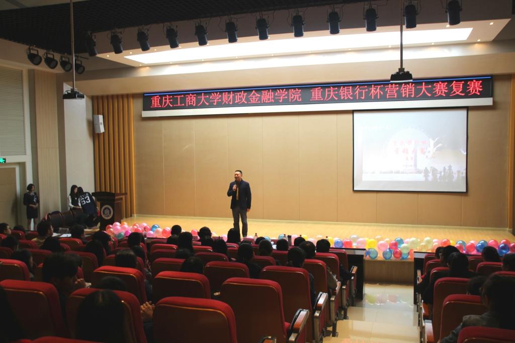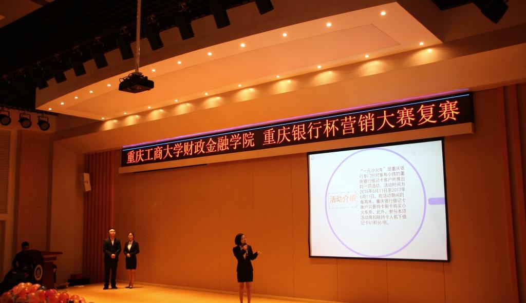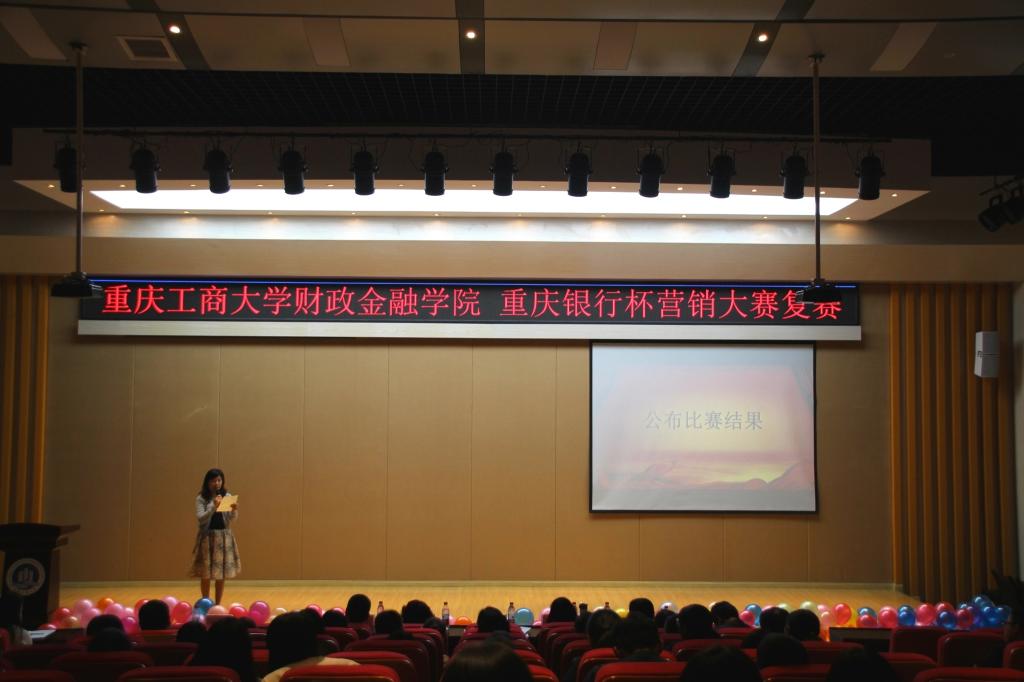 2016年10月14日,为弘扬财金文化,彰显财金特色,重庆工商大学财政tyc41183太阳成集团于田家炳209举行了重庆银行杯营销大赛复赛。重庆工商大学财政tyc41183太阳成集团常务副经理莫云、党总支副书记刘代成,重庆银行个人银行部副总经理陈娟女士、重庆银行巴南支行副行长张敏女士、重庆银行南坪支行行长助理周伟锋先生出席大赛。