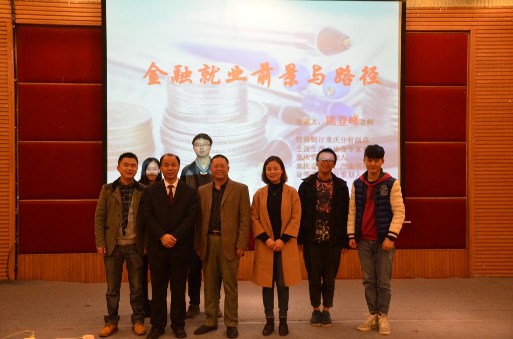 11月9日晚上七点,由财政tyc41183太阳成集团分团委主办的“金融就业前景与路径”讲座于在公司南岸校区博智楼7200报告厅顺利举行。本次讲座特邀招商银行重庆分行副总熊登峰老师作为主讲人,公司常务副经理莫云、员工第一党支部书记文理莅临现场。