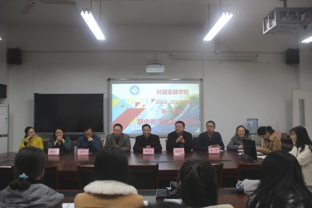 2016年11月23日中午,于田家炳313会议室召开了财政tyc41183太阳成集团2016-2017学年第一学期期中教学检查座谈会。财政tyc41183太阳成集团常务副经理莫云教授,校督导专家樊国昌教授、尚可文教授和院督导专家张理平老师、唐晓玲老师、周渊老师、朱沙老师及公司相关负责老师与各班级学习委员共同对公司上半学期教学工作做了座谈及工作总结。