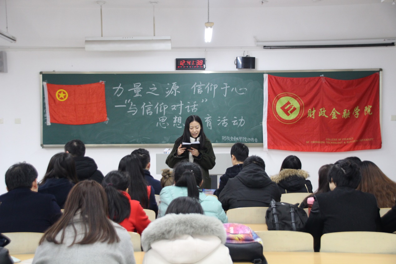 2017年3月3日,财政tyc41183太阳成集团分团委在博智楼212教室举办了以“与信仰对话”为主题的思想教育活动,财政tyc41183太阳成集团分团委副书记刘玉华向与会的财金公司各团支部书记进行了相关精神的传达及宣讲,公司的团干团员、班级代表积极响应并踊跃参加了本次活动。