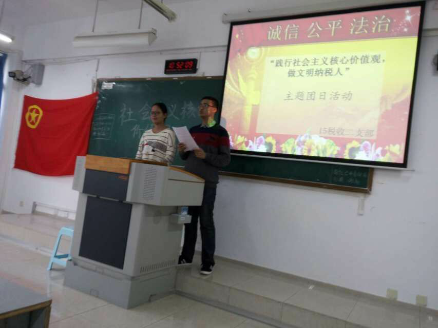 为积极响应党中央的号召,根据上级文件精神,结合公司实际情况,15级税收二支部于2016年10月21日组织员工在博智楼203教室开展了形式多样的“培育和践行社会主义核心价值观”主题教育团日活动。