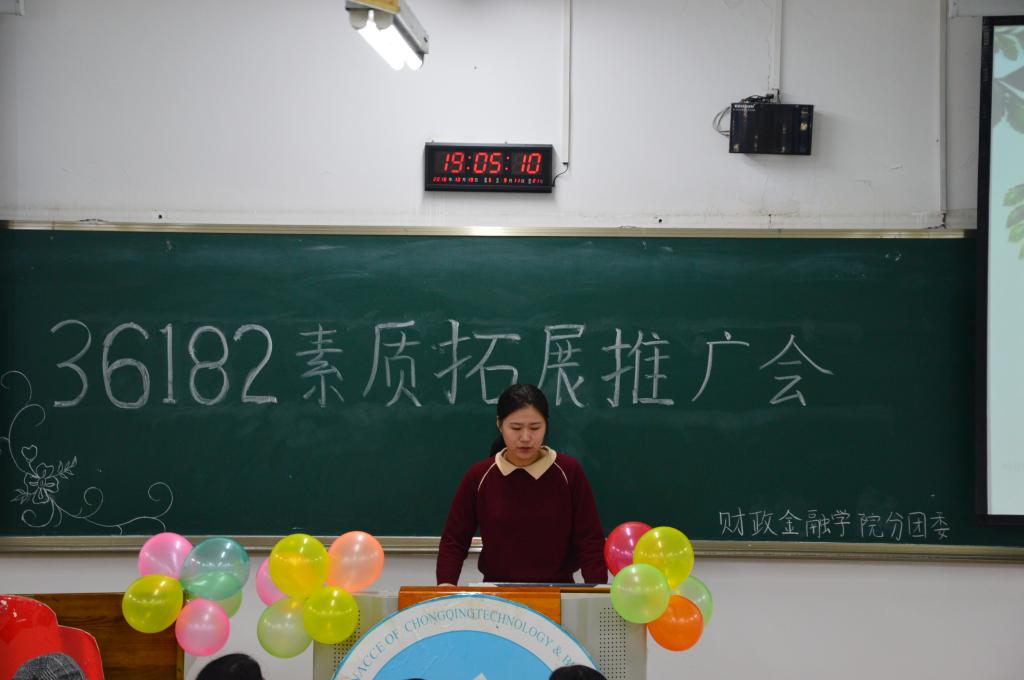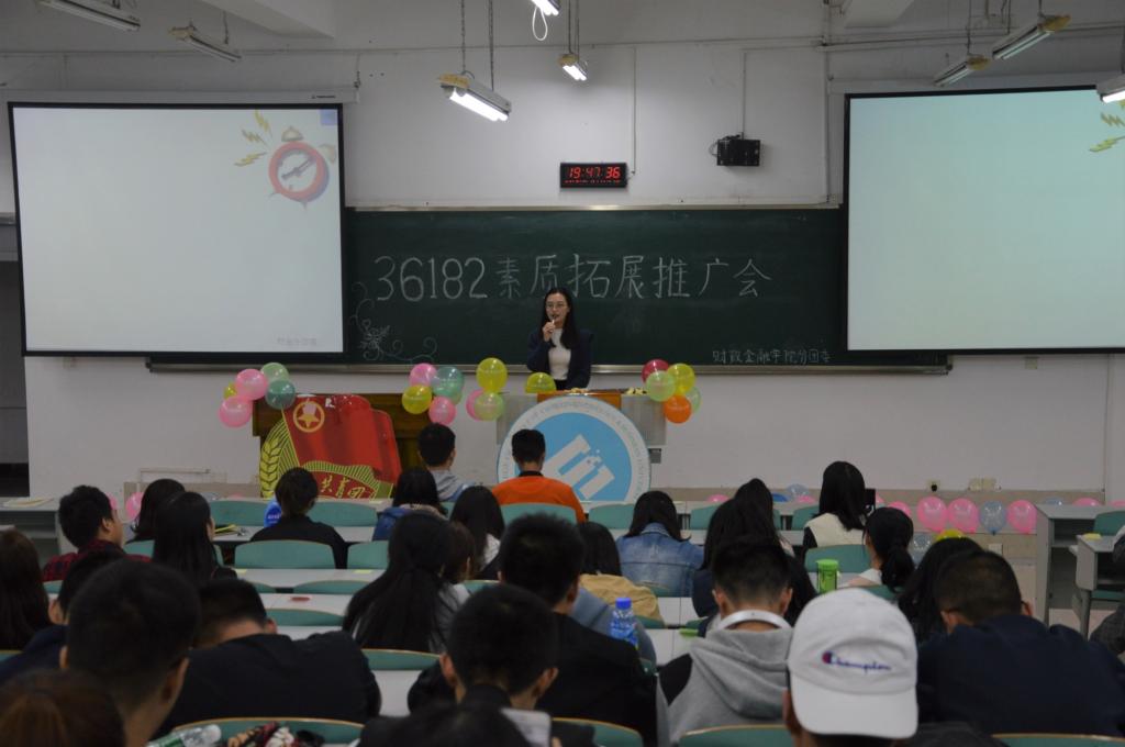 2018年10月19日晚上七点,由财政tyc41183太阳成集团分团委主办的第八届青马文化月之“36182”素质拓展推广会活动在博智楼07106顺利开展。本次素拓推广会对18级CFA新生及17级同学的素质拓展计划提出合理化建议,引导和激励员工更好地进行素质拓展。