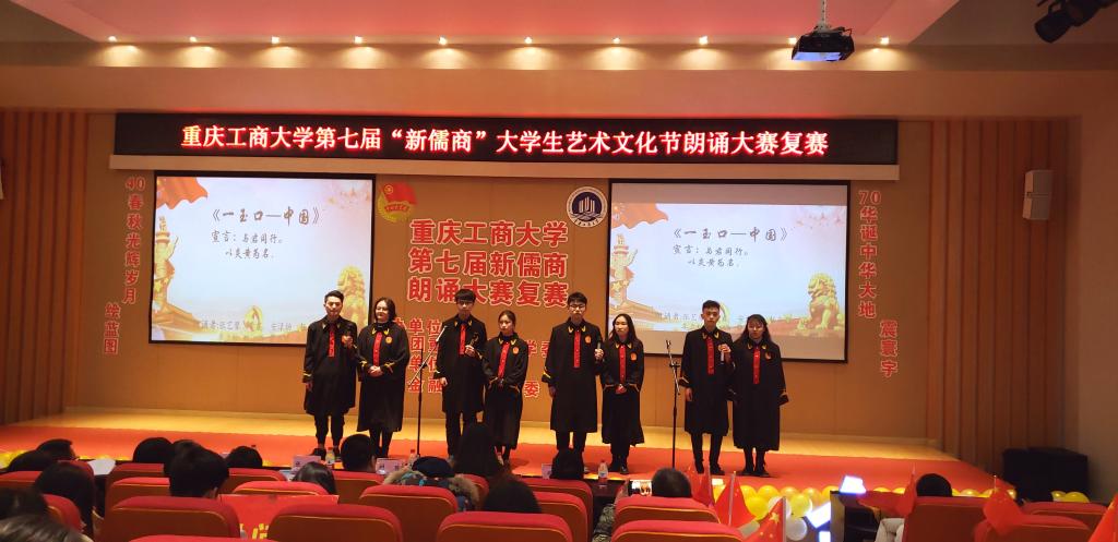 拳拳赤子心,歌颂爱国情。为庆祝祖国七十华诞,歌颂改革开放四十周年伟大成就,2018年12月16日晚18:00,重庆工商大学第七届“新儒商”老员工艺术文化节朗诵大赛复赛于南岸校区田家炳书院209报告厅圆满举行。本次大赛由共青团重庆工商大学委员会主办,财政tyc41183太阳成集团分团委员工会承办。复赛现场气氛热烈,来自各公司的选手与观众期待着大赛的完美演绎。