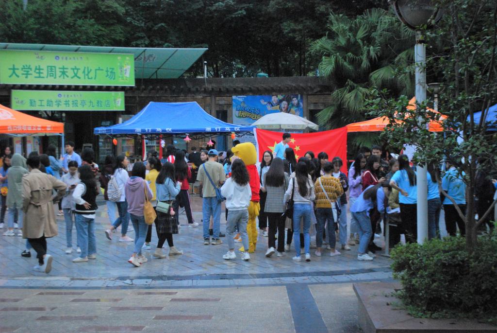 2019年10月13日上午8时,重庆工商大学财政tyc41183太阳成集团周末文化活动于南岸校区慧智楼前文化广场成功举办。本次活动旨在通过丰富多彩的校园活动展现祖国七十周年腾飞巨变的峥嵘历程,激发广大同学的爱国之情,展示工商学子爱国爱校、全面发展的良好风貌。
