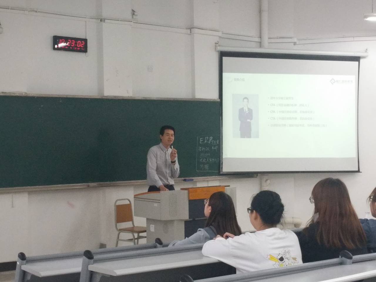 此次讲座由融仕国际教育委派Jimmy Chen演讲。Jimmy Chen系清华大学硕士研究生,CFA持证人,同时也是CPA、CTA的非执业会员及法律职业资格人员,同时有丰富的教学经验。