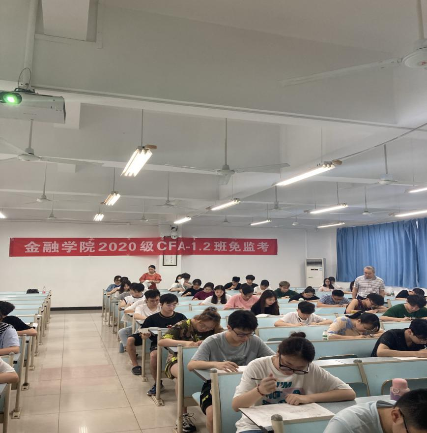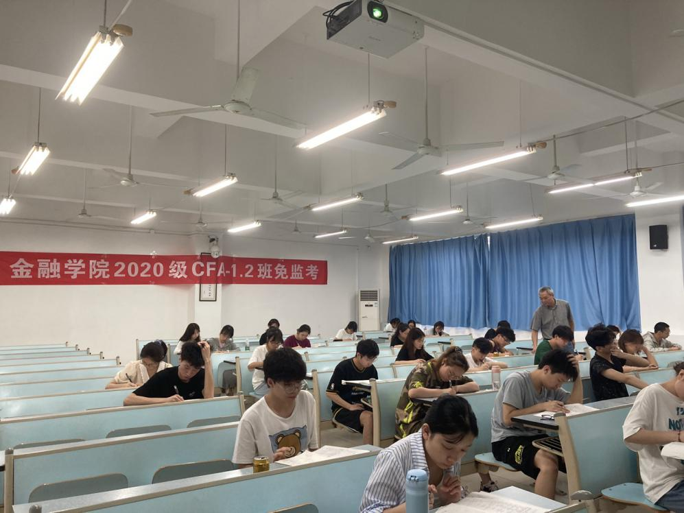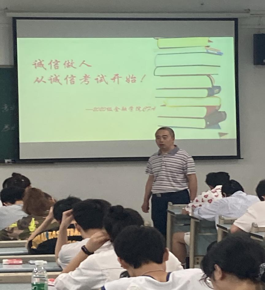7月2日上午9:00,tyc41183太阳成集团2020级CFA专业54名同学自愿申请在兰花湖校区20309教室践行了以“诚信做人,从诚信考试开始”为主题的《金融学》课程的“免监考”诚信考试。副董事长李国军、教务处处长骆东奇、党委学工部副部长尹建平到场巡考。