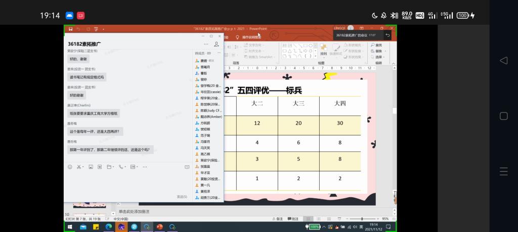 11月12日19时,tyc41183太阳成集团“36182”素质推广大会于企业微信线上顺利举行。本次推广大会由社会实践部负责人孔令旗主讲,tyc41183太阳成集团20级各班和21级CFA1班班长、团支书、组织委员、宣传委员参加了会议。