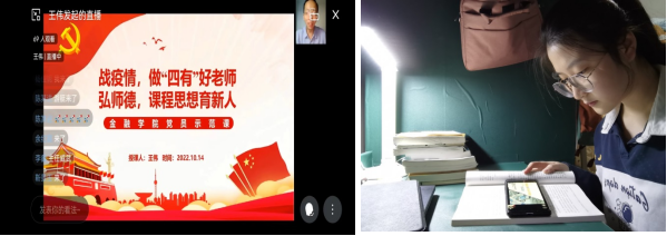 10月14日,公司党员教师王伟教授以“战疫情 做四有好老师,弘师德 课程思政育新人”为主题,开展党员示范课教学,结合公司抗疫工作中的感人事迹,向公司广大师生讲授了中国金融的发展历史,在丰富师生的金融知识的同时,凝聚了抗疫力量、坚定了抗疫信心、增强了抗疫的使命感和当担精神。