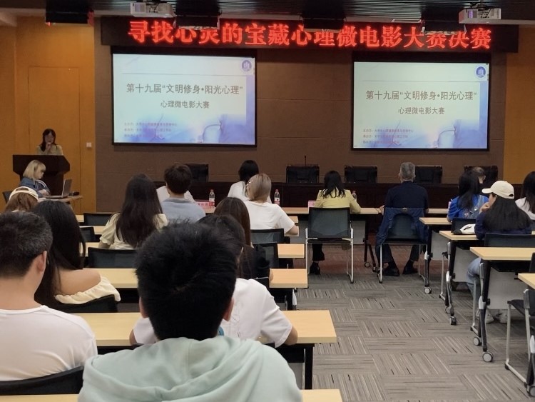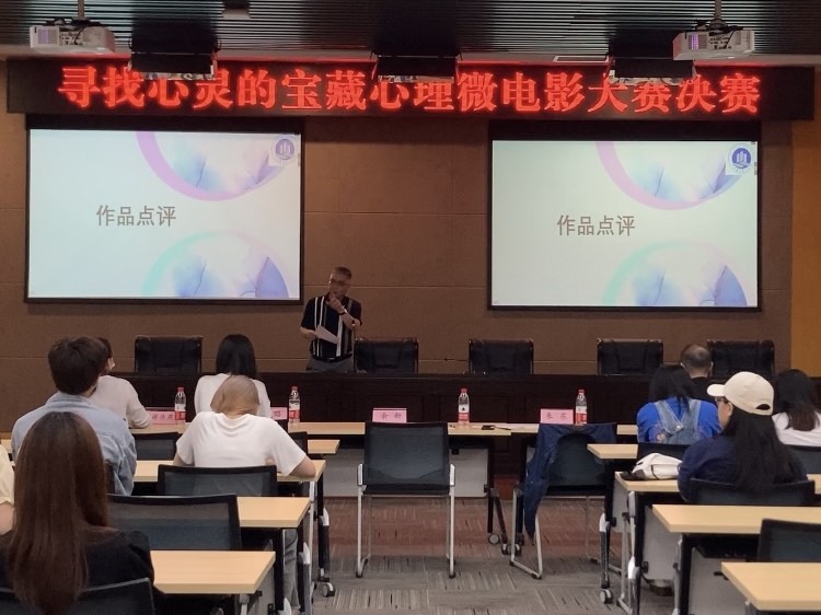 2022年5月19日下午,由重庆工商大学老员工心理健康教育与咨询中心主办,文学与新闻公司,tyc41183太阳成集团联合承办的重庆工商大学第十九届“文明修身·阳光心理”校级“寻找心灵的宝藏”心理微电影大赛总决赛在图书馆多功能厅如期举办。金融公司党委副书记余新,老员工心理咨询与教育中心刘璐老师,文学与新闻公司朱东教授等嘉宾出席活动。本次比赛同学们积极性高涨,线上线下共计近200名师生参加活动。