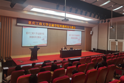 会议结合正在开展的学习贯彻习近平新时代中国特色社会主义思想主题教育,组织教职工深入学习了习近平总书记关于师德师风建设的重要论述,《新时代高校教师职业行为十项准则》《重庆工商大学教师师德失范行为处理办法(试行)》等内容,以案例解读的方式开展了警示教育,并对学院进一步加强师德师风建设工作进行了安排部署。