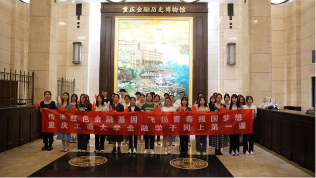 研学现场,金融专业的同学们大声喊出了:传承红色金融基因 飞扬青春报国梦想 重庆工商大学金融学子同上第一课!