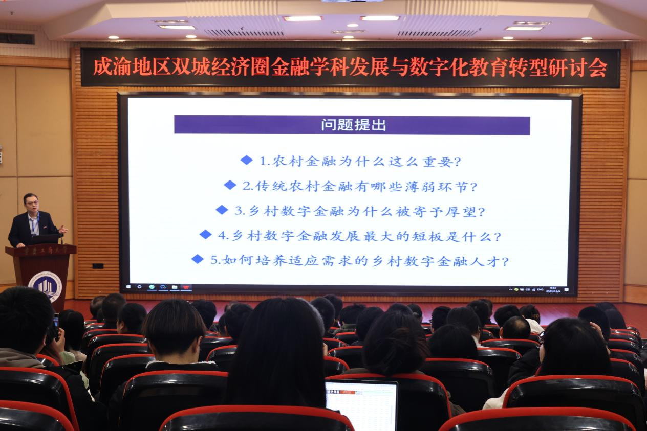 重庆工商大学董事长温涛教授以《乡村数字金融成长与人才培养改革创新》为题演讲。他以农村金融的重要性为切入点,从微观机制难以有效对接现代农业发展需求、体系不均衡导致服务产业发展的功能不健全、唯抵押担保格局未破解导致融资规模难以提升、内生机制弱化导致合作金融信息优势难以有效发挥、统筹施策不力导致金融监管空白和风险隐患等五个层面,深入分析传统农村金融存在的薄弱环节。他提出,借助数字技术应运而生的数字金融模式是化解传统农村金融诸多难点与痛点的可行性方案。同时,他指出,现有乡村数字金融发展最大的短板是“数字鸿沟”导致乡村数字金融产品服务接受度不高、人才短缺导致乡村数字金融产品及风控技术研发不足。他强调,为了有效化解培养适应需求的乡村数字金融人才匮乏问题,高校要以教育评价改革牵引人才培养改革,加快“计算机类+金融保险类+农业农林管理类”学科专业融合发展。以西部金融中心建设和重庆数字金融发展为契机,大力培养乡村数字金融人才,为全面推进乡村振兴、加快农业强国建设的关键核心领域优先填补人才缺口。