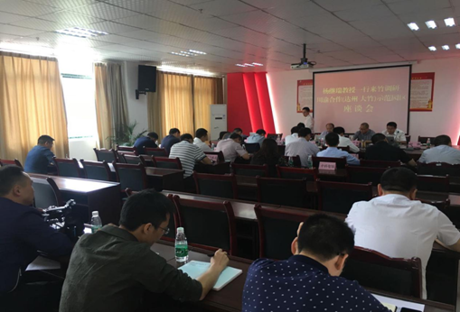 调研结束之后,文传浩教授等人与何洪波书记、李志超县长、任黎副县长、刘烨副县长、县委办、县府办、发改局、经信局、财政局、国土资源局、住建局、环保局、投资促进局、经开区管委会等单位负责人在大竹县经开区管委会参加座谈会,会议由李志超县长主持。