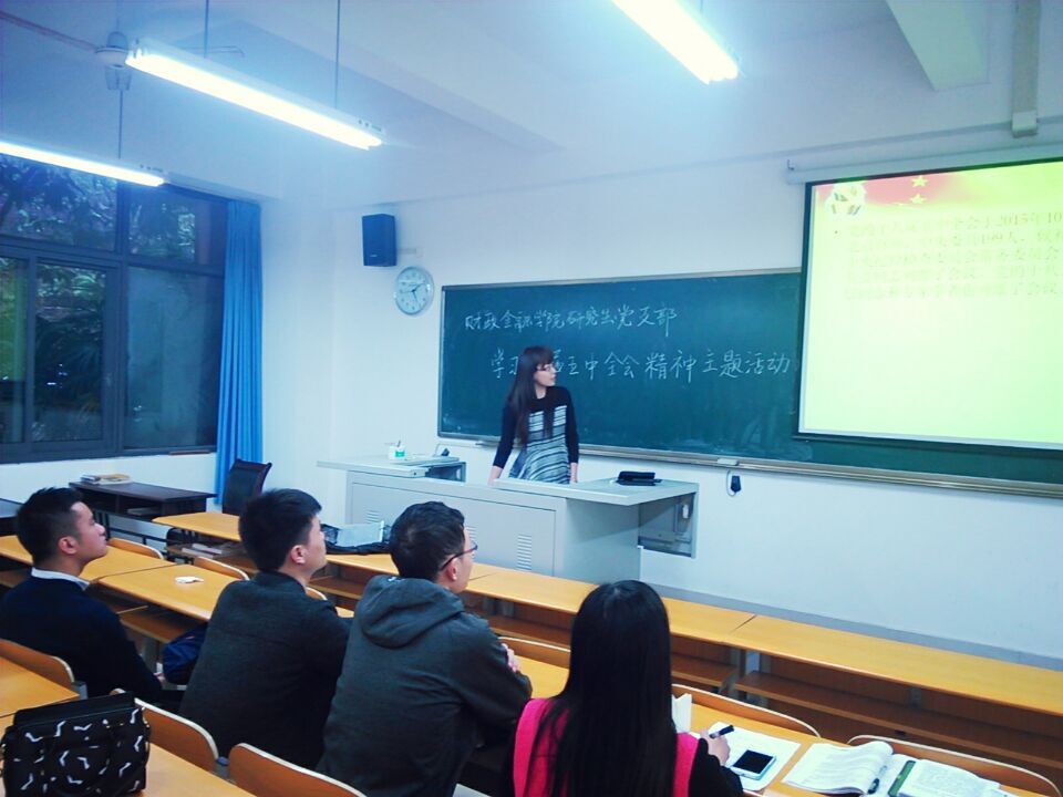 11月16日下午16点,财政tyc41183太阳成集团研究生党支部在田家炳50311召开了学习党的十八届五中全会精神主题活动。