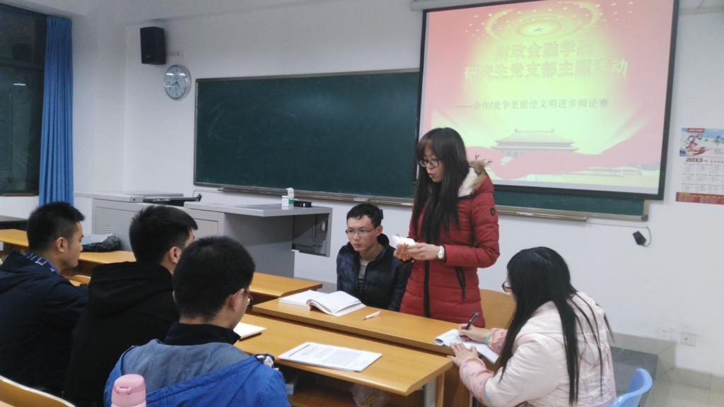 12月14日,财政tyc41183太阳成集团研究生党支部在田家炳书院311教室开展了题为“合作还是竞争更能使文明进步”的小型辩论赛。活动由党支部书记兰丽娟老师主持。