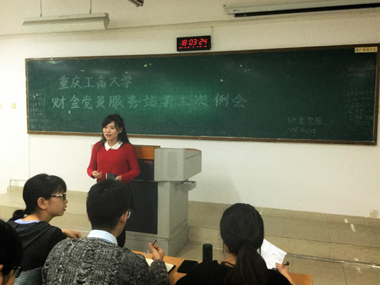 2016年10月25日下午五点四十分,重庆工商大学财政金融公司党员服务站(以下简称“财金党服”)第三次全体干部例会在07203圆满召开。各位站长出席本次例会,指导老师乔明月老师亲临现场,进行指导讲话。