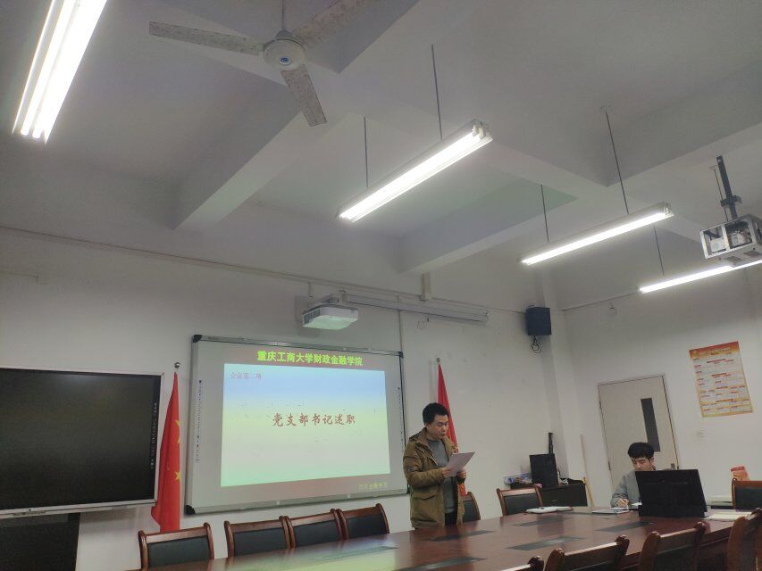 2018年12月13日下午5点40,重庆工商大学财政tyc41183太阳成集团分党委员工第一党支部在田家炳306召开了12月的第一次支部大会,会议由林秋梦同志主持,员工第一党支部书记文理列席会议。本次会议的主要内容有:1.学习习近平主席在全国教育大会、生态保护大会以及全国宣传思想工作会议上的重要讲话;学习习近平主席给中央美术公司老教授的重要回信;2.学习以黄群、宋月才、蒋开斌同志为代表的抗灾英雄群体和王继才同志的先进事迹;3.观看《“五毒俱全”破法纪,歧途末日终自毁》警示教育片;4.党支部书记文理进行述职报告及党员民主评议。