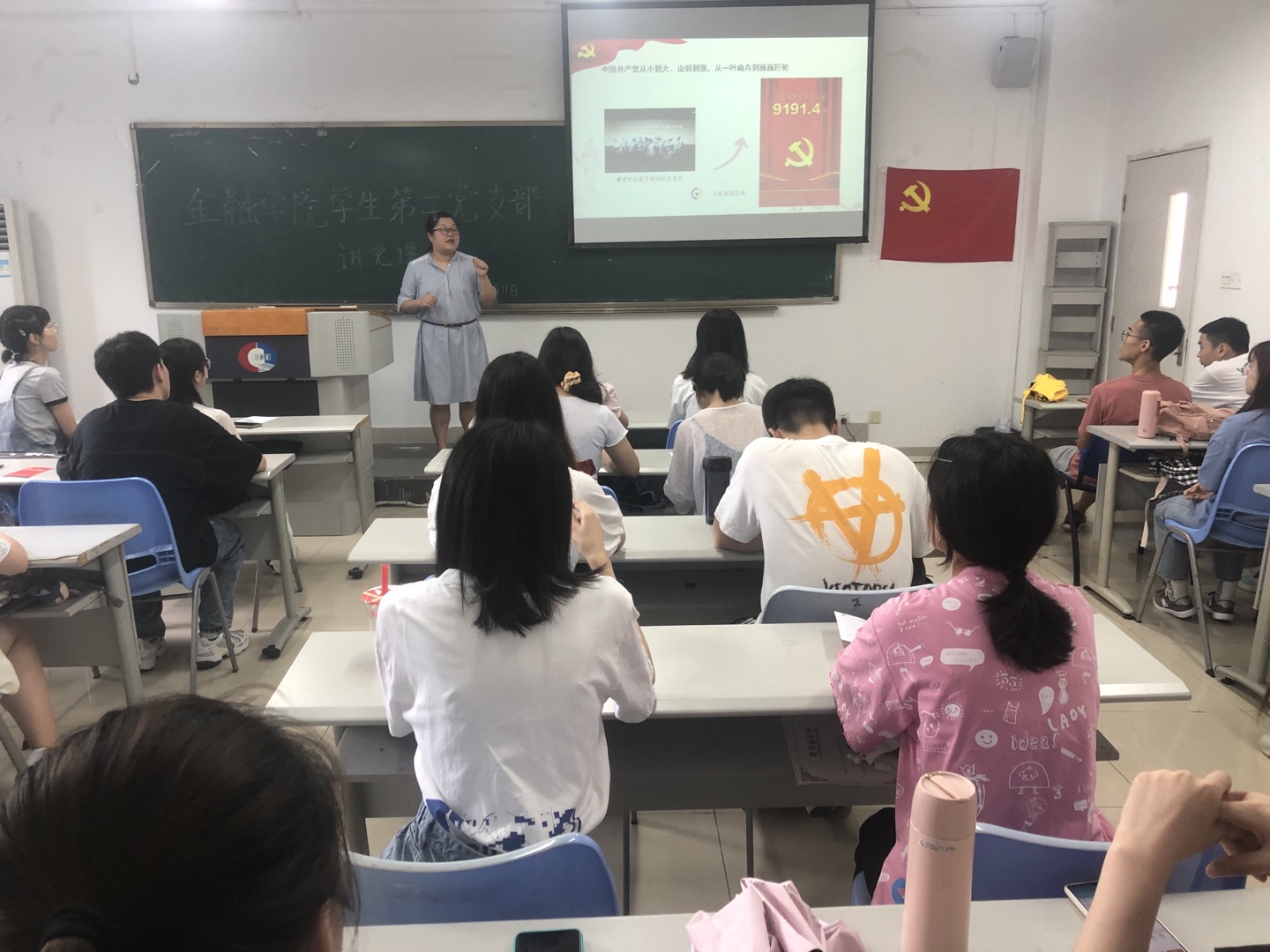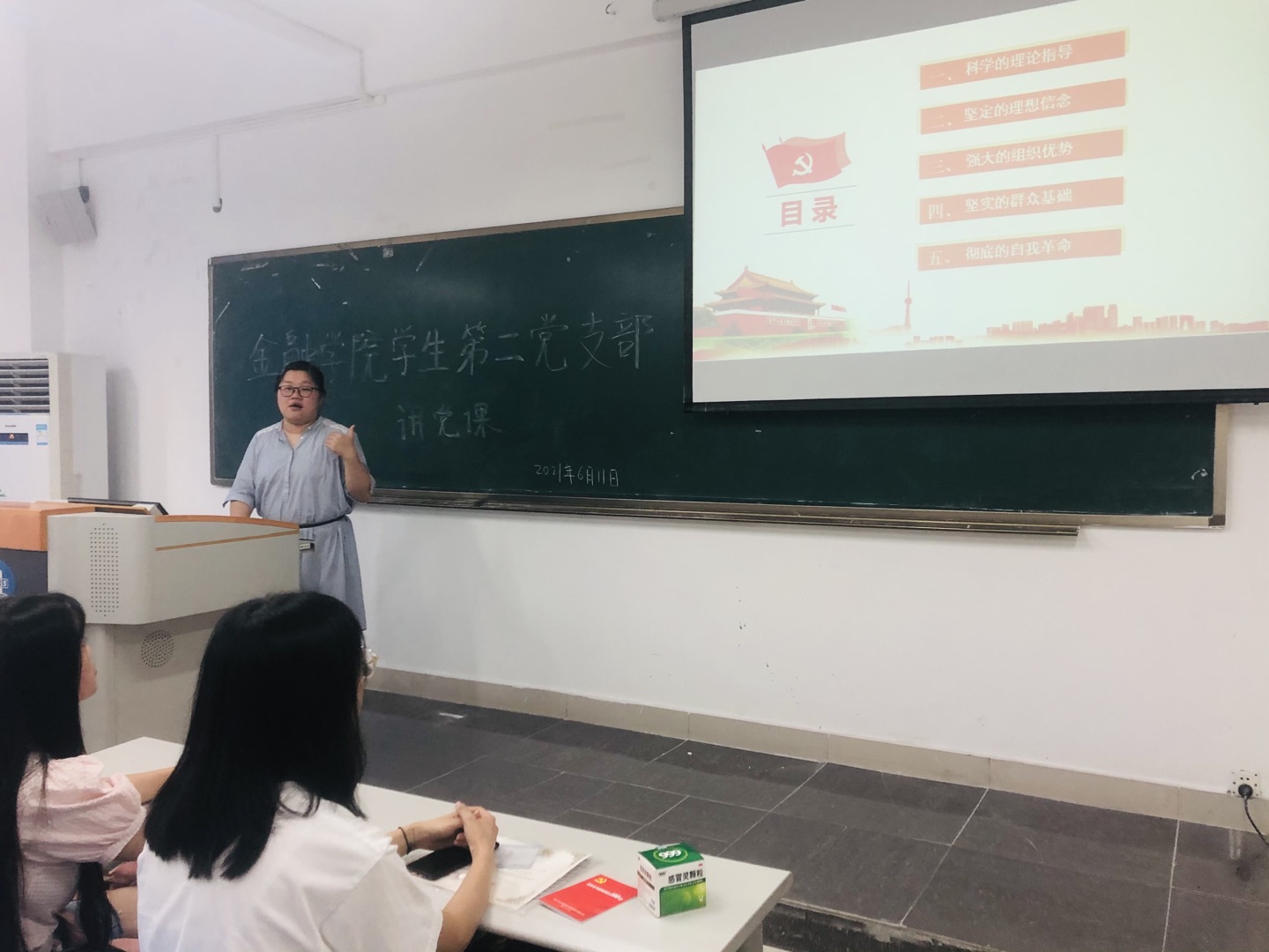 2021年6月11日中午12点30,重庆工商大学tyc41183太阳成集团员工第二党支部在田家炳307召开了支部书记讲党课,党史学习教育活动,会议由党支部书记乔明月主持。员工第二党支部党员参加学习。本次党课主要有三个板块:中国共产党为什么行、党员毕业生寄语、党员先锋模范作用。