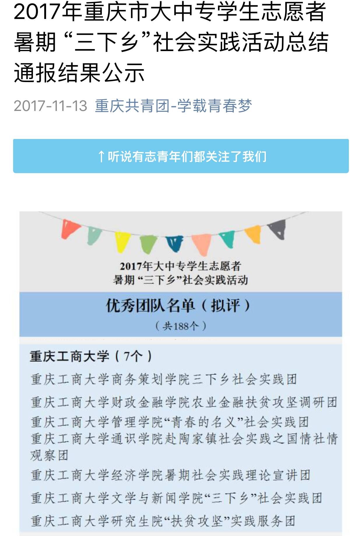 此次暑期三下乡,财政tyc41183太阳成集团发挥专业优势,把握时代主脉,组织了农业金融扶贫攻坚调研团,深入涪陵增福乡实地考察扶贫情况,点面结合开展多层次金融知识扶贫服务宣讲,用专业的知识和新的理念助力科技农业新发展。该团队在共青团中央网络影视中心举办的“线上三下乡,扶贫我先行”活动中荣获“优秀新媒体传播团队奖”,同时公司三下乡实践团队还获得重庆市暑期“三下乡”社会实践活动优秀团队以及校级优秀团队,除此之外还获得了校级暑期三下乡社会实践活动先进集体。