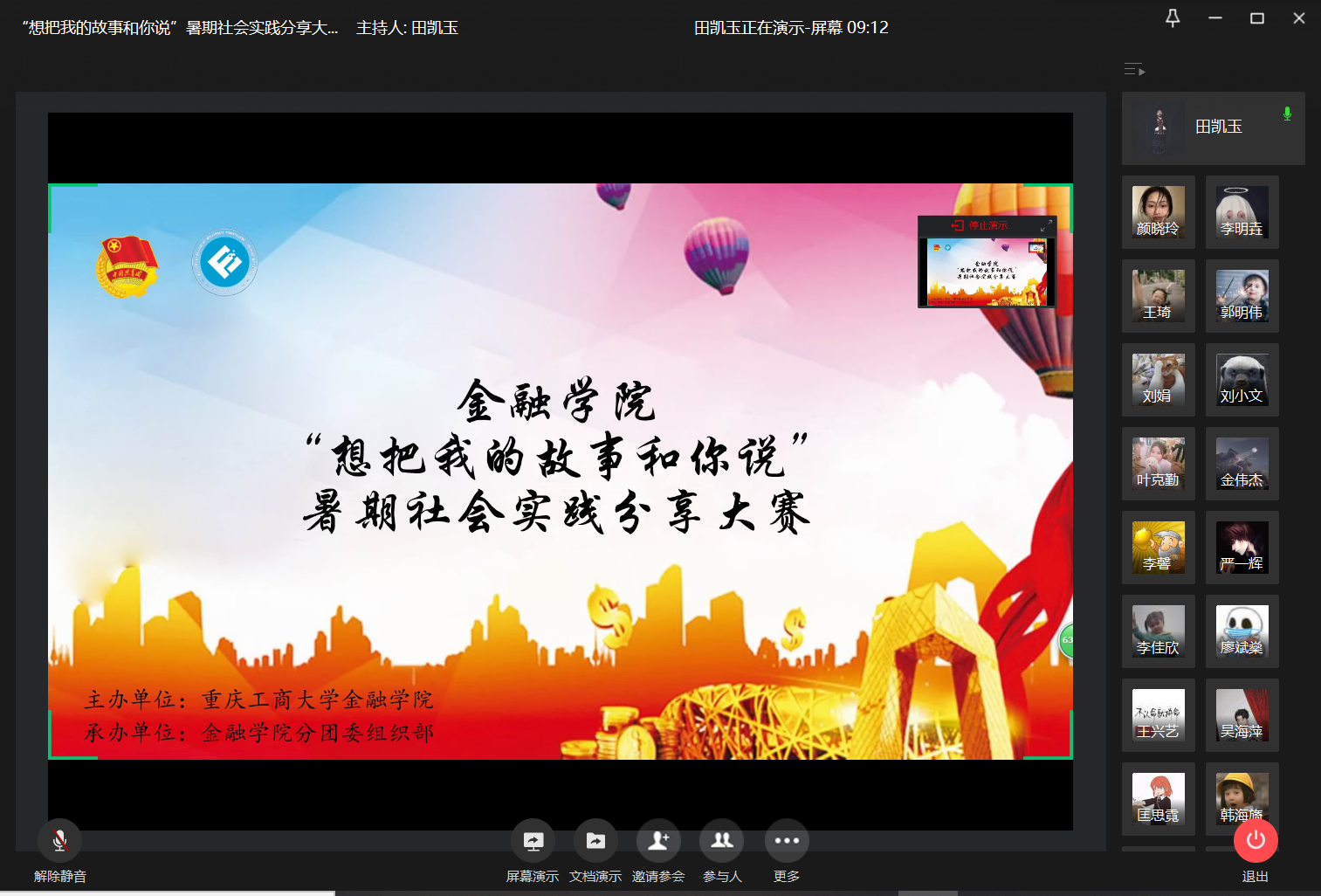 为激励同学们提炼总结暑期社会实践的所感所获所悟,共享实习实践经验,9月26日19:00,tyc41183太阳成集团“想把我的故事和你说”暑期社会实践分享大赛于企业微信准时拉开帷幕。