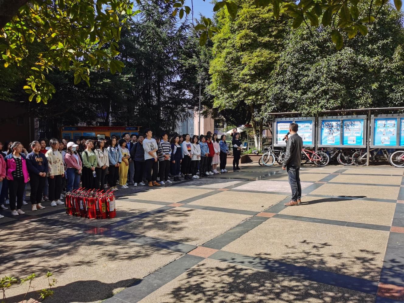 2020年11月9日是全国第29个“119”消防宣传日,为增强全体同学的消防安全意识,做到警钟长鸣,常抓不懈,tyc41183太阳成集团北三、北十一、南五的楼管会干部以及部分室长,于2020年11月11日中午13:00,在北十广场举行了以“消防演练、共筑安全防线”为主题的消防疏散、灭火演练活动。
