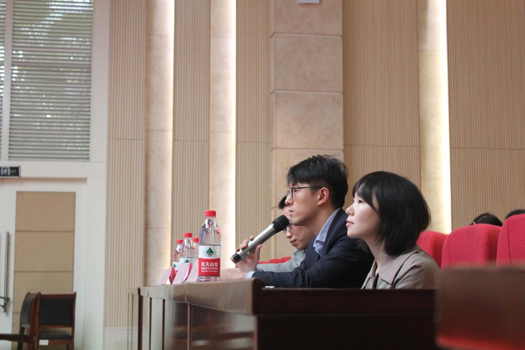 参加本次决赛的十位选手是历尽三个月的角逐,从人数多达600人的初赛中脱颖而出。在决赛中,分享自己的投资策略和感悟收获。其中,李彦隆选手以清晰而素雅的演示文稿及自信的演讲姿态获得大众好评,他回顾以往市场,讲述自己比赛时的心理变化,内容通俗易懂又极具趣味。陈启函同学重视技术面与基本面的分析,他从K线走位及日线、周线形态要素对其自选股:宝钢股份、阳光电源等进行技术面分析,对钢铁、新能源行业展开基本面分析。张可睿选手结合自身投资情况对贵州茅台进行宏观、微观及技术面分析,并由此得出了“掌握投资策略,锻炼良好心理素质”的感悟。舞台上的各位选手各显其通,娓娓道来,将答辩气氛推向高潮。