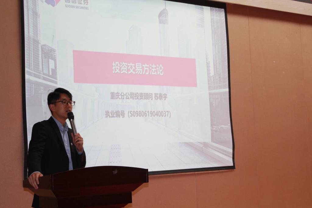 在比赛的最后,国信证券重庆分公司代表苏泰宇对本次活动进行了总结和分析。他赞赏选手们的表现远超他的预期,也指出了选手们对于投资的风险及股票仓位控制的忽视,并对此提出建议和指导。