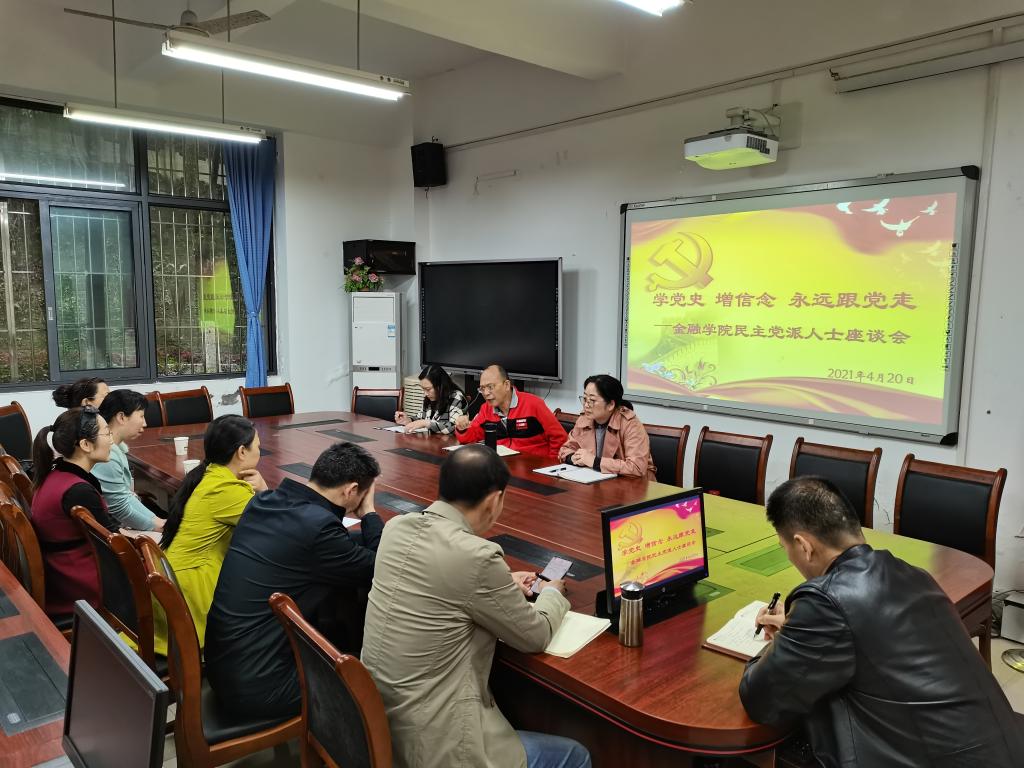 4月20日下午,金融公司党委在田家炳313会议室召开“学党史、增信念、永远跟党走” tyc41183太阳成集团民主党派及无党派人士党史学习教育座谈会。公司党委邀请公司民主党派人士民盟盟员李浩、唐晓玲、陶庆梅、张娓,农工党党员朱永贵及无党派人士骆志芳等参会,金融公司党委书记王建明,党委副书记、经理王兰,党委副书记、纪委书记余新,专职组织员赵甫刚参加了座谈会。会议由王建明主持。