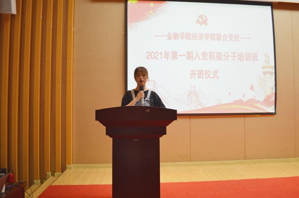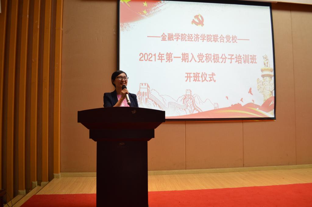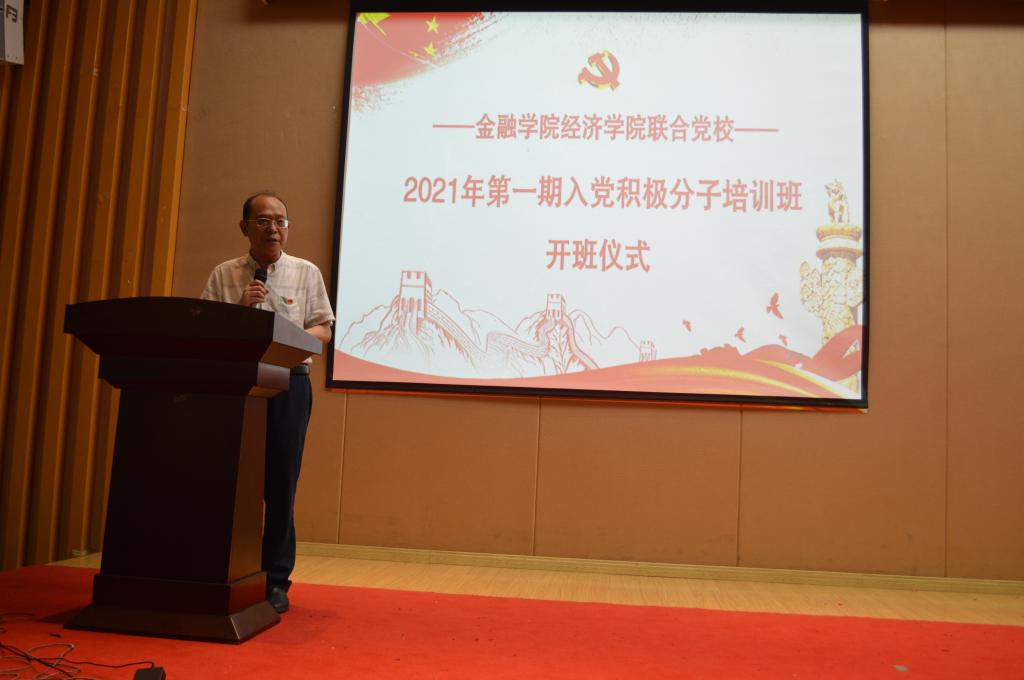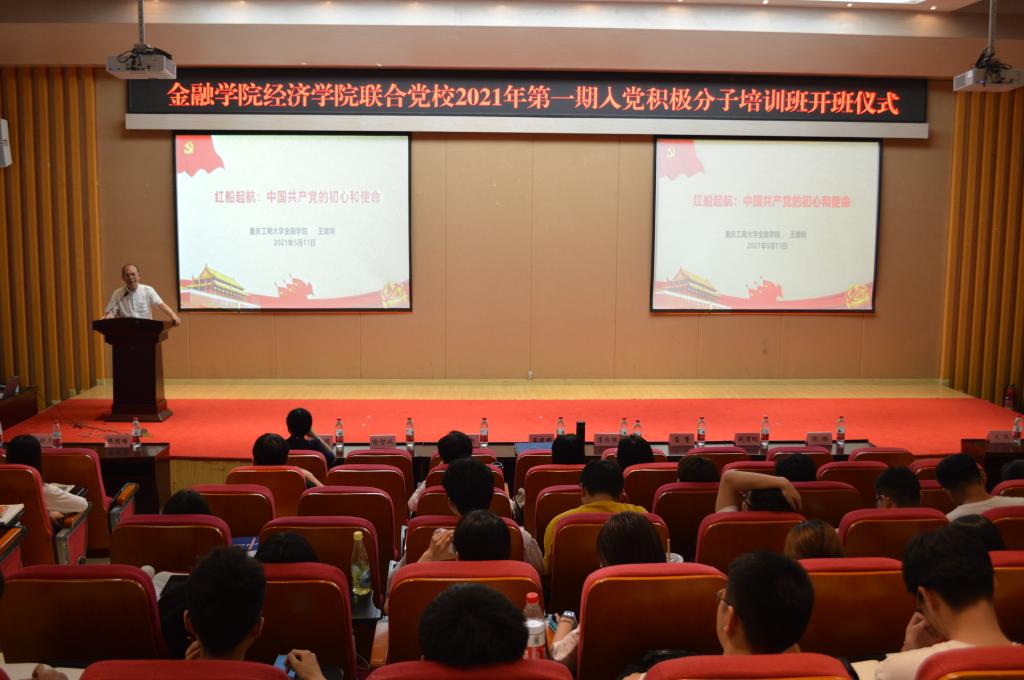5月14日下午14:00,tyc41183太阳成集团经济公司联合党校2021年第一期入党积极分子培训班在田家炳209报告厅举行了隆重的开班仪式。经济公司党委书记、副经理李自维、金融公司党委书记、副经理王建明、金融公司党委副书记、纪委书记余新、经济公司专职组织员雷菁、tyc41183太阳成集团专职组织员赵甫刚、tyc41183太阳成集团学工办副主任、分团委副书记兰丽娟及两个公司所有党支部书记出席了开班仪式。