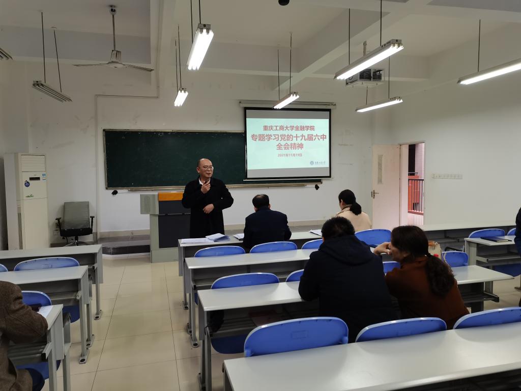 2021年11月19日下午,tyc41183太阳成集团召开全体教职工大会专题学习党的十九届六中全会精神。会议由金融公司党委副书记、经理王兰主持。