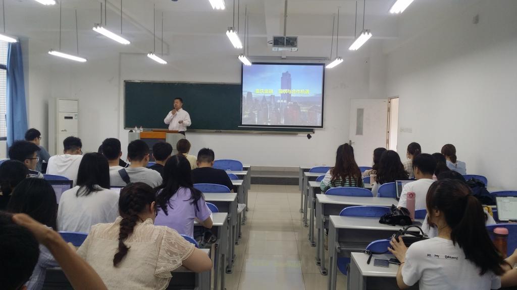 6月28日上午9:00,在田家炳50306,重庆工商大学财政tyc41183太阳成集团组织了主题为“重庆金融 现状与合作机遇”的学术讲座。由重庆市金融监管局金融发展服务中心张洪铭主任主讲,公司副经理曾胜教授主持,2018级全体研究生及部分老师参加了此次讲座。