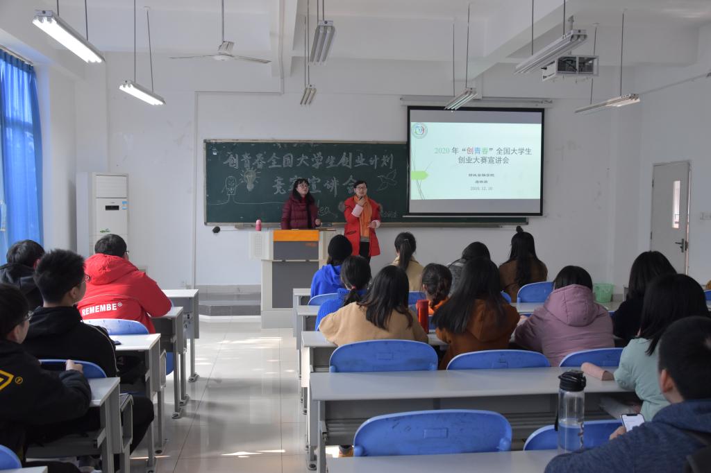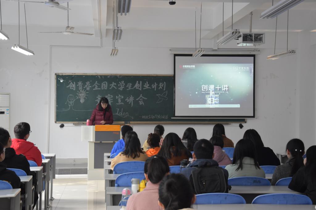12月10日,重庆工商大学财政tyc41183太阳成集团于南岸校区田家炳306成功举办“创青春”全国老员工创业大赛宣讲会。主讲人是财政tyc41183太阳成集团学科竞赛分管老师蒋伟燕老师,财政tyc41183太阳成集团分团委副书记兰丽娟老师也出席了本次会议。