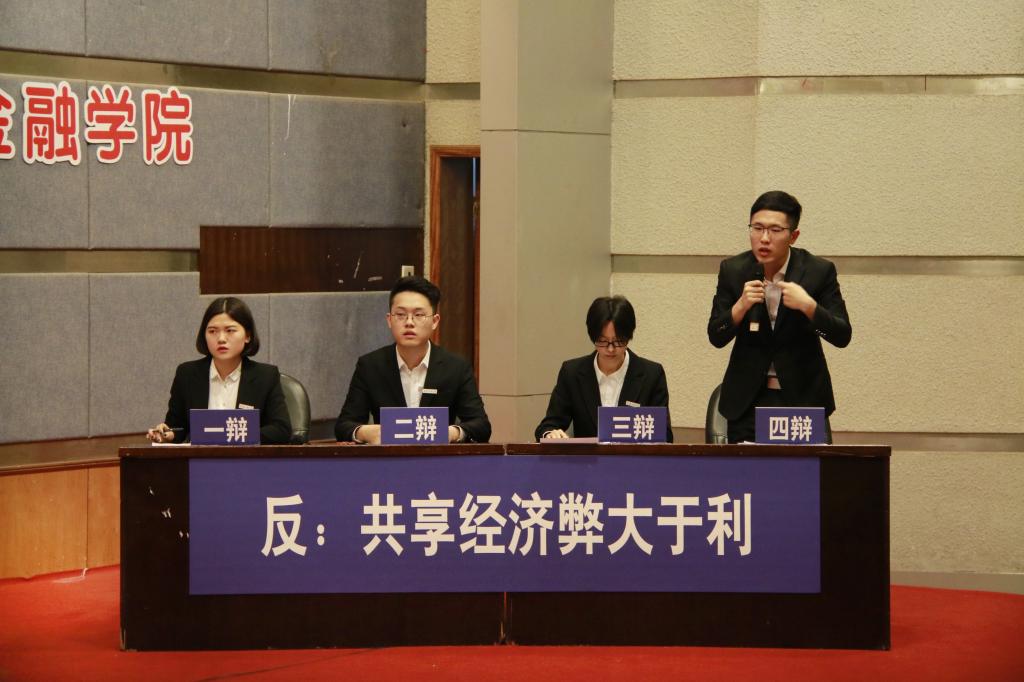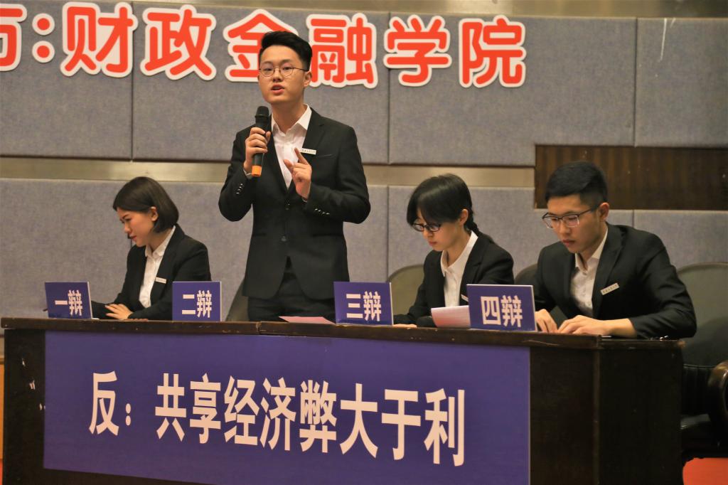 进入决赛的是财政tyc41183太阳成集团辩论队与环境与资源公司辩论队。双方就“共享经济利大于弊/弊大于利”展开辩论。比赛伊始,作为正方的环境与资源公司开宗明义,通过分析市场现状和共享经济发展趋势阐明了“共享经济利大于弊”的观点。我方辩手则提出了共享经济会提高社会成本,占用社会资源的观点,并从另外一个角度剖析共享经济的蓬勃发展容易导致恶性竞争从而破坏市场规则,影响经济的正常运行,进而论证了“共享经济弊大于利”的论点。在随后的自由辩论与总结陈词环节,双方辩手你来我往、旁征博引,以沉稳冷静、妙语连珠的表现获得了在场观众与评委的阵阵掌声。