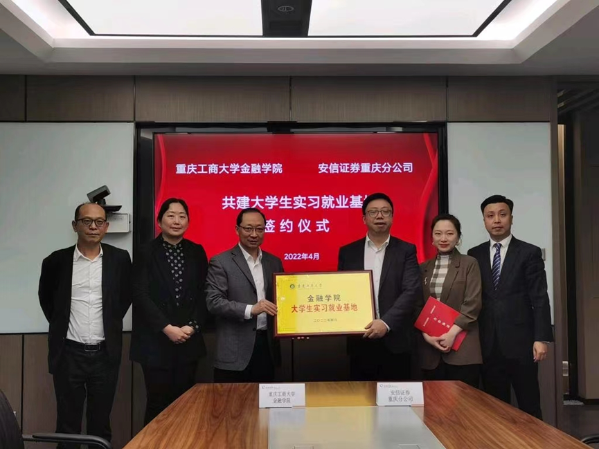在走访安信证券重庆分公司座谈交流会上,公司2003届优秀毕业生、公司总经理丁洪一向张波介绍了安信证券重庆分公司的基本情况和发展规划,分享了他在校的难忘经历,表达了对母校培养的感激之情,并希望今后加深双方合作。随后,双方就实现产教融合、做学合一,共建“实习就业基地”等项目展开交流。王兰代表重庆工商大学tyc41183太阳成集团同安信证券重庆分公司签订了实习实训基地协议,张波为双方“共建老员工实习就业基地”授牌。
